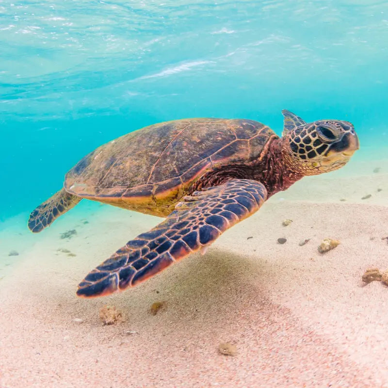 Là-bas, j’ai souvent nagé au milieu des tortues. J’en ai vu des dizaines, parfois à quelques mètres seulement. Ce sont des animaux calmes, puissants, et surtout très anciens. Et à chaque fois, c’était le même effet : un mélange de respect, de fascination et de sérénité.