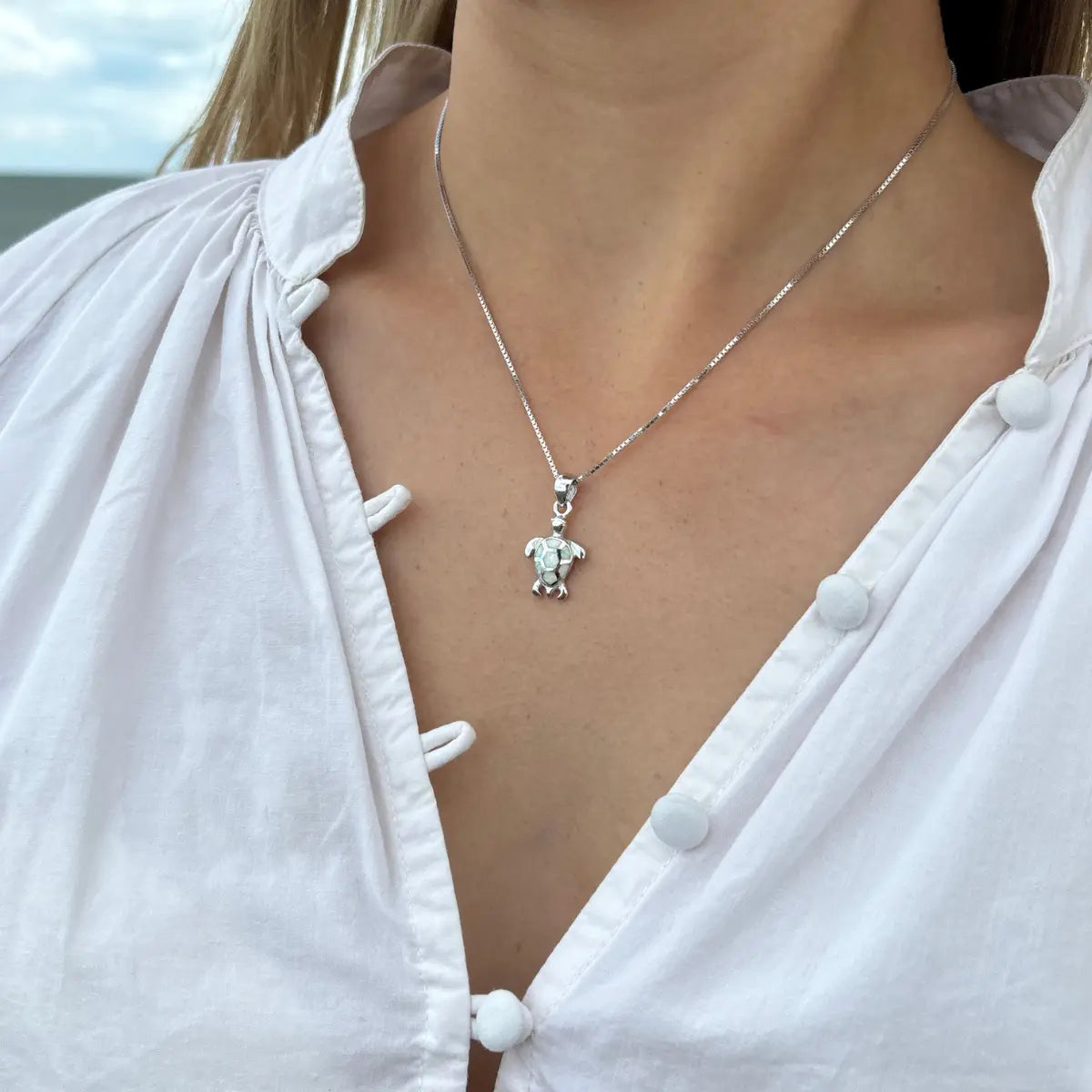Alava, notre pendentif tortue en argent 925 rhodié, inspiré des plages de sable noir de Martinique, incarne la force de la nature volcanique et la magie des fonds marins.